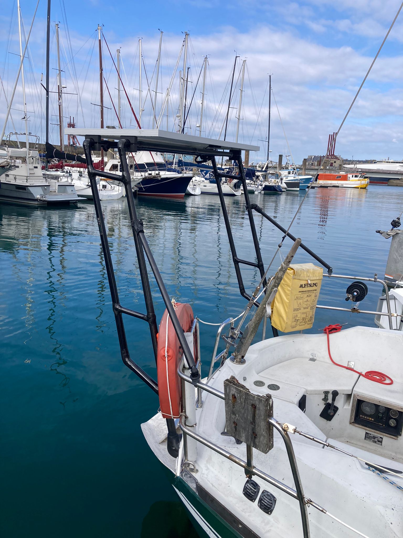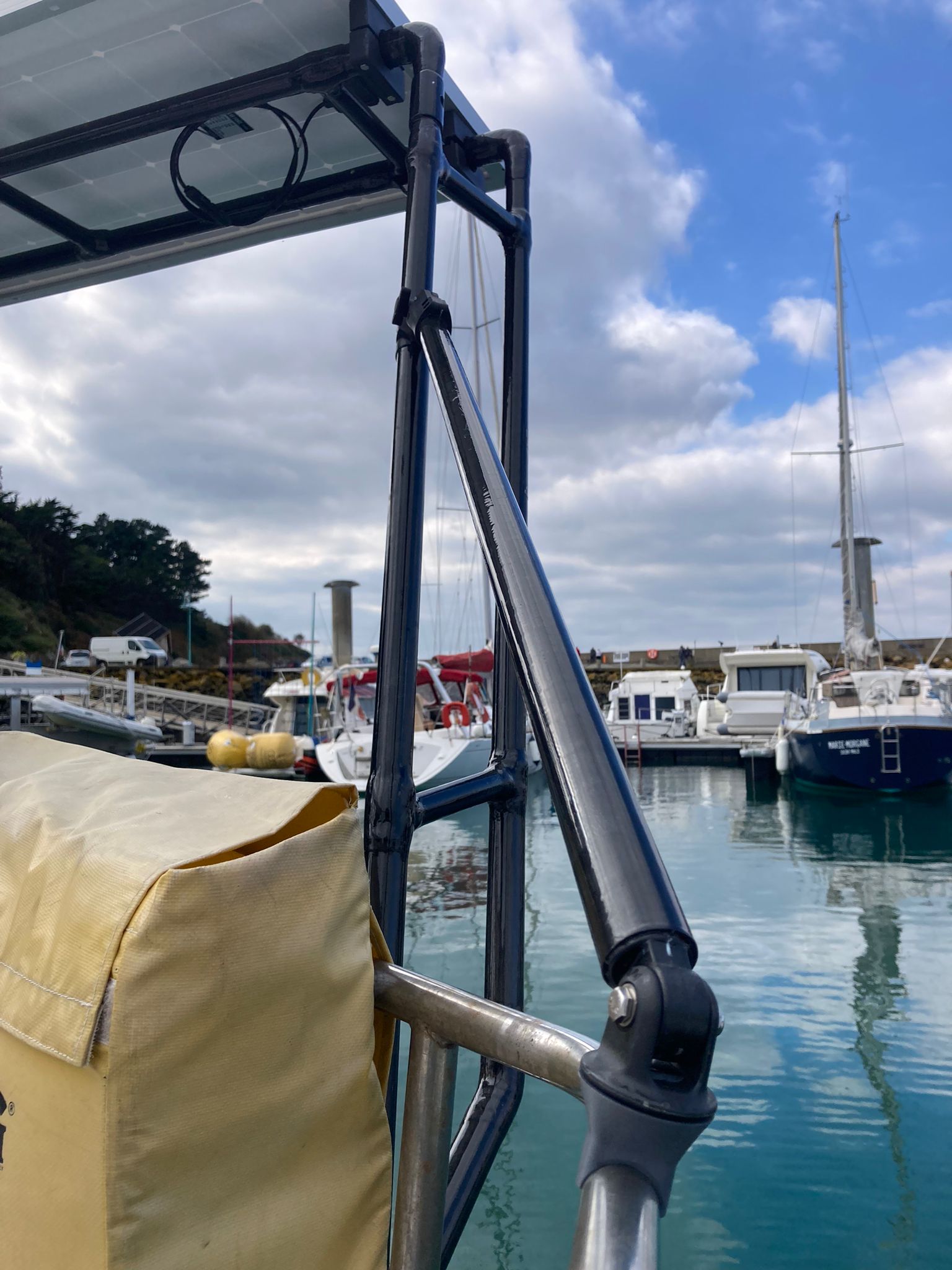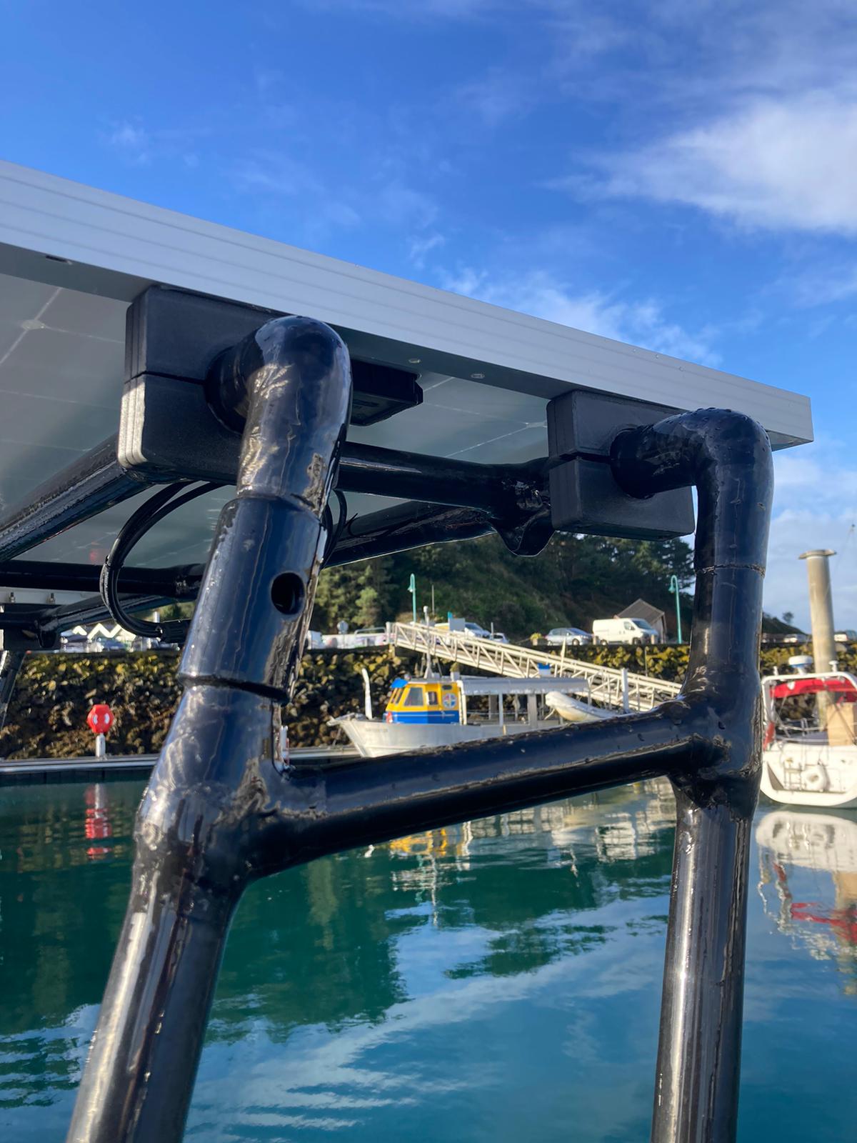 Pour éviter l’enfouissement ou l’incinération de cette matière à forte valeur ajoutée, Mayero conçoit et fabrique des équipements dédiés au nautisme. L’entreprise, créée fin 2022, commercialise des portiques sur mesure, des arceaux monotube pour l’installation de panneaux solaires, des supports pour panneaux solaires souple, radars, antennes Starlink, toile d’ombrage, des bossoirs d’annexe et des balcons à destination de la plaisance mais aussi de la voile de compétition, classe Transquadra et Mini 6.50 majoritairement, rendant compatible les plaisirs de la navigations avec une démarche environnementale axée sur l’upcylcing de matériaux composites ! Les process de fabrication de nos produits utilisent également de la fibre de carbone de second cycle (rebus de l’industrie automobile) et/ou de la fibre naturelle comme le lin, produite en Normandie.