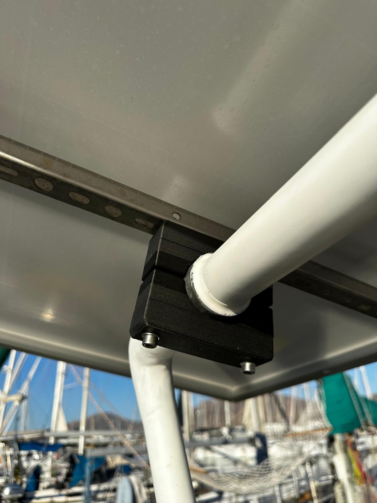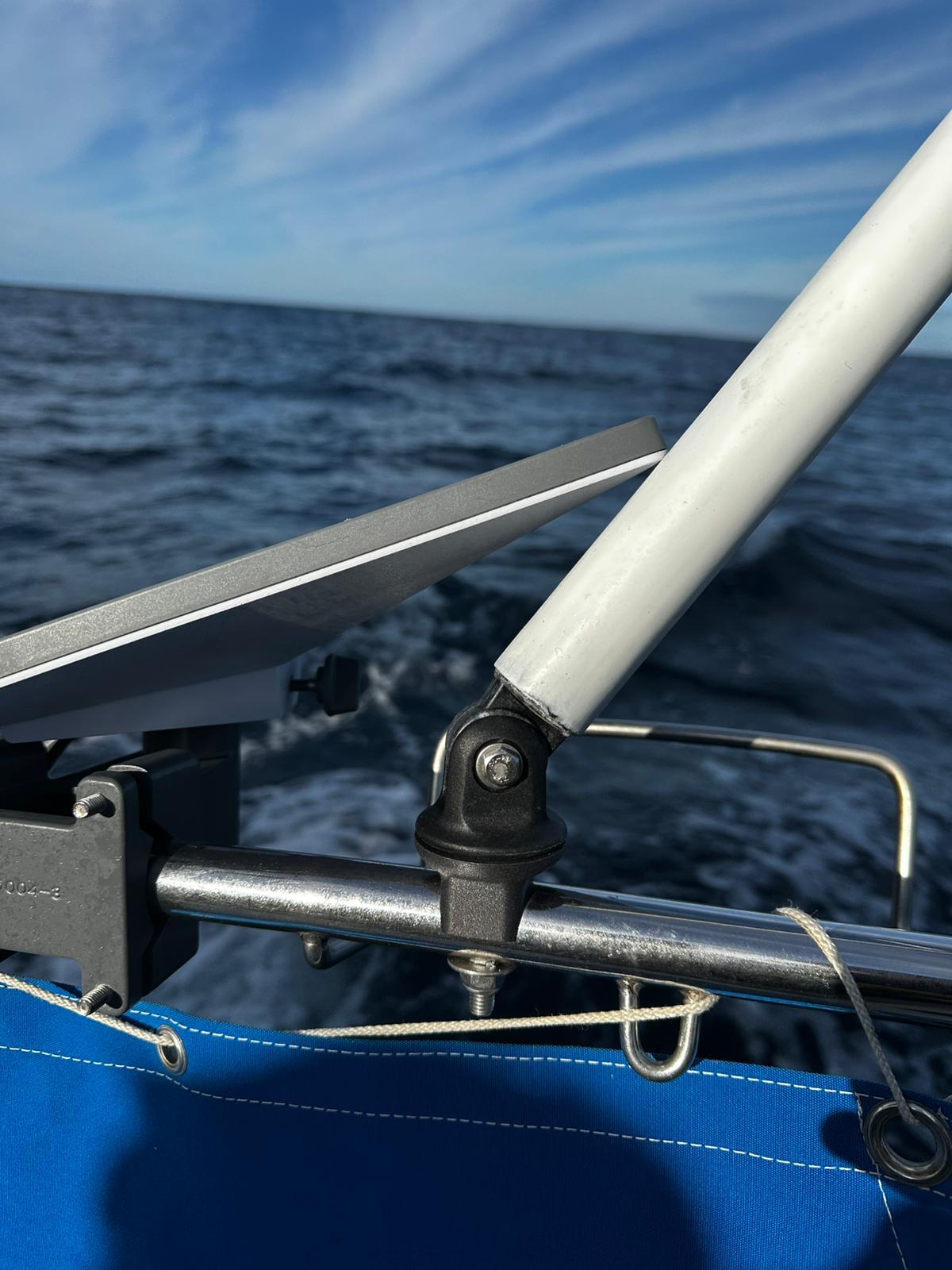 Dans le cas où vous ne souhaitez pas nécessairement manutentionner votre annexe comme sur un portique classique, l’arceau monotube représente une bonne option pour installer vos panneaux solaires rigides. En effet, le nombre de jonctions étant largement réduit par rapport à un portique, ce support sur-mesure monotube permet l’installation de panneaux solaires rigides à moindre frais. L’autre avantage : n’étant pas gêné par un second tube horizontal, les panneaux peuvent être inclinés pour améliorer la captation des rayons solaires et ainsi améliorer la recharge des batteries.